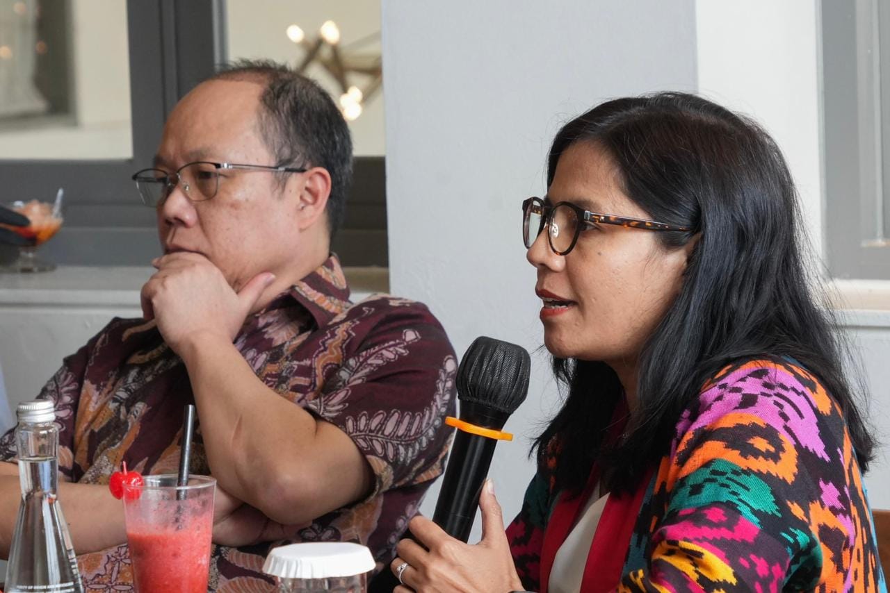 Pemimpin Redaksi SUAR, Sutta Dharmasaputra bersama Pemimpin Redaksi Bisnis Indonesia, Maria Yuliana Benjamin dalam suatu diskusi bersama Menteri Koordinator Bidang Perekonomian, Airlangga Hartarto di Jakarta. (Foto: Dokumen Humas)
