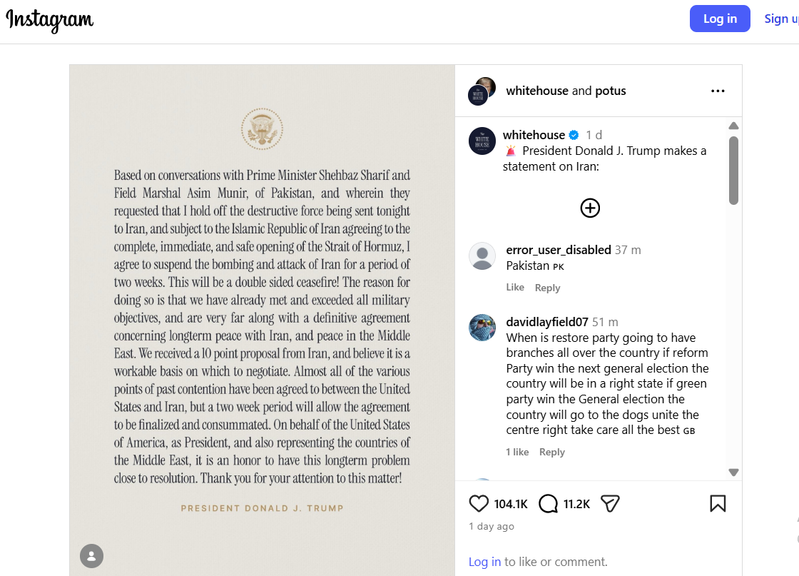 “Saya setuju untuk menangguhkan pemboman dan serangan terhadap Iran selama dua minggu. Ini akan menjadi gencatan senjata dua sisi. Alasannya adalah karena kita telah memenuhi dan melampaui semua tujuan militer, dan telah mencapai kesepakatan definitif mengenai perdamaian jangka panjang dengan Iran dan perdamaian di Timur Tengah,” demikian pernyataan Trump dalam akun sosial medianya.