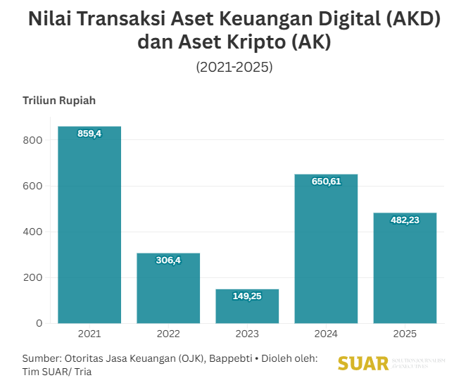 - Industri investasi aset kripto (crypto currency) menyiapkan sejumlah upaya penguatan literasi dalam menghadapi masalah ketidakpercayaan dari investor ritel dan calon investor di tengah disrupsi ekonomi global. Meski tren menunjukkan kenaikan, nilai transaksi aset kripto 2025 yang mencapai Rp482,83 triliun turun jauh dibandingkan nilai transaksi kripto 2024 yang mencapai Rp650,61 triliun