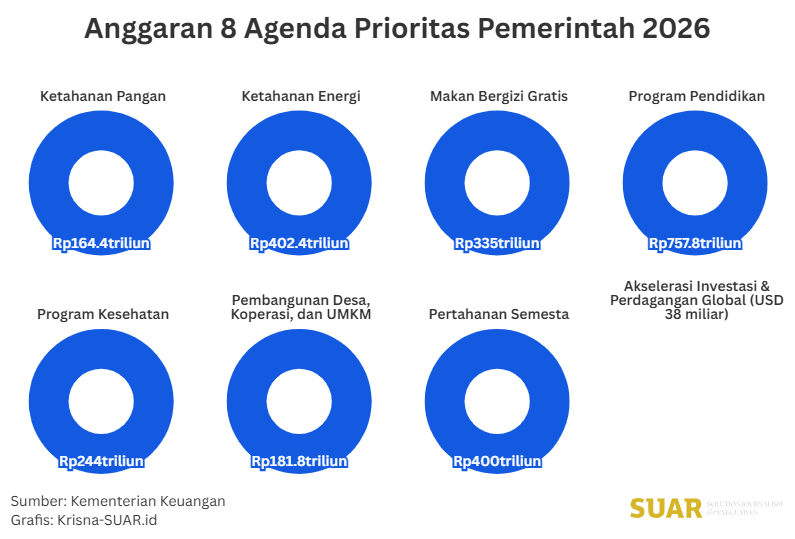 - In the midst of limited fiscal space, President Prabowo Subianto wants to immediately step on the gas to implement his programs in 2026. One of the flagship programs that has been highlighted is the Free Nutritious Meal (MBG), which received a budget of Rp335 trillion in 2026. Apart from the flagship program, the 2026 Draft State Budget is designed with eight main focuses: food security, energy security, superior generation through MBG, quality education, equitable health, cooperative-based populist economy, universal people's defense, and accelerating global investment.