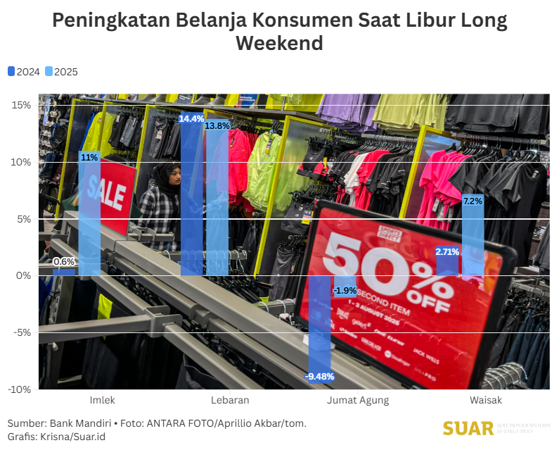 - In the midst of sluggish purchasing power and the outbreak of the Rohana (Rombongan Hanya Nanya) and Rojali (Rombongan Jarang Beli) phenomena, retailers and shopping centers take advantage of thelong weekend to boost sales. Chairman of the Indonesian Shopping Center Tenants Association (Hippindo) Budiharjo Iduansyah assessed that the moment of August 17 succeeded in lifting visitor traffic . He said that almost all types of businesses in shopping centers felt the impact, ranging from restaurants, clothing stores, to toy outlets. Promotions that were held simultaneously made the shopping atmosphere livelier throughout the long holiday.