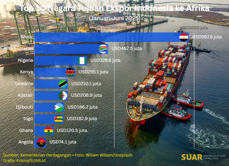- In order to overcome the potential sluggishness of exports after the implementation of reciprocal export tariffs to the United States (US), Indonesian exporters need to look for new market destinations. One potential market that the government is exploring is trade to Africa. Countries on this continent have stable economic growth and are keen to receive imported products from abroad. The African market is as big as China. Africa's population is estimated at 1.3 billion, representing 16% of the world's population.