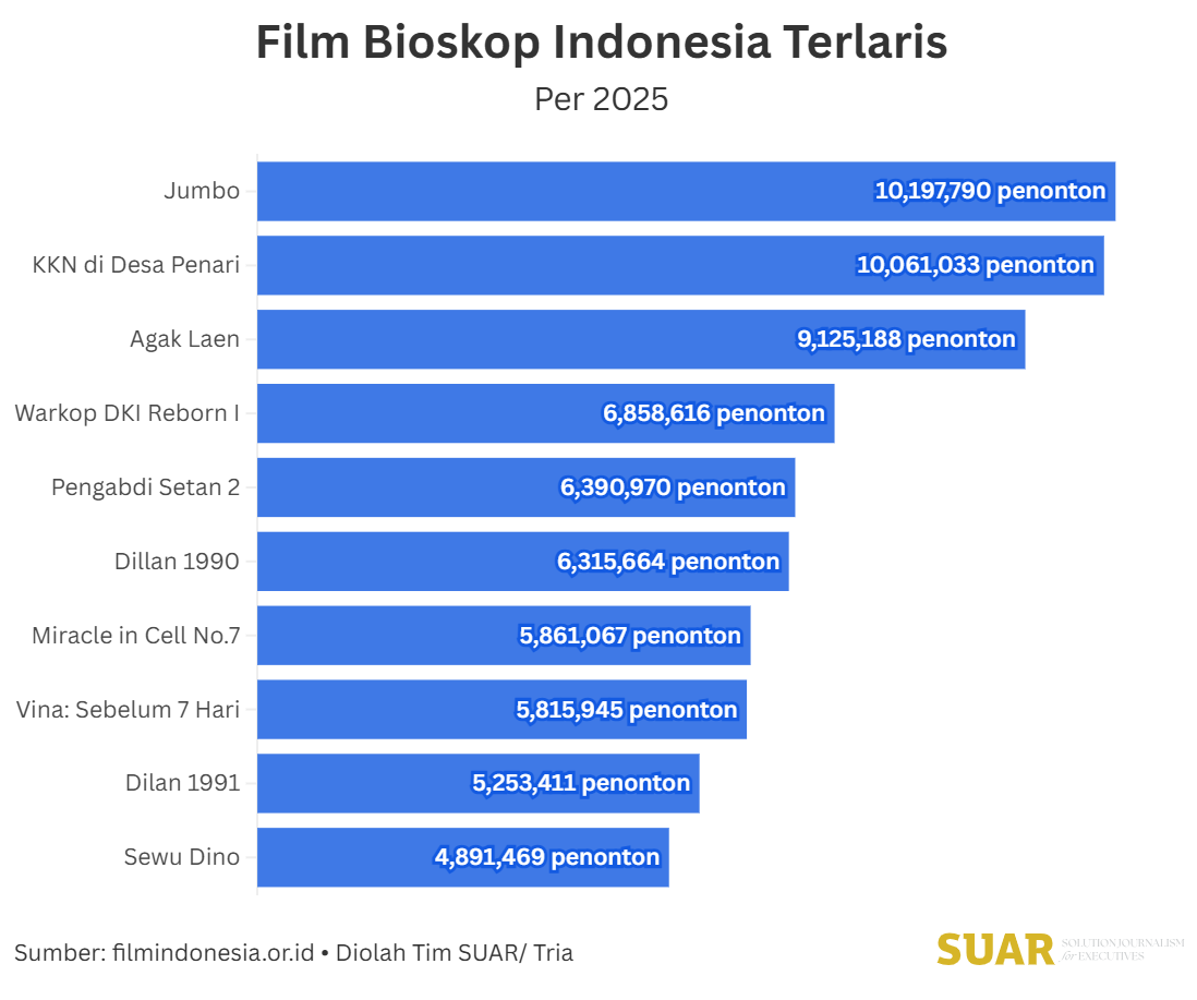 - Speaking of Box Office, a site that often reviews cinema films noted that the number of viewers for Indonesian films released in 2025 has reached 46.56 million as of July 20, 2025, equivalent to 66% of the total audience—marking a surge of 99% compared to the previous year.