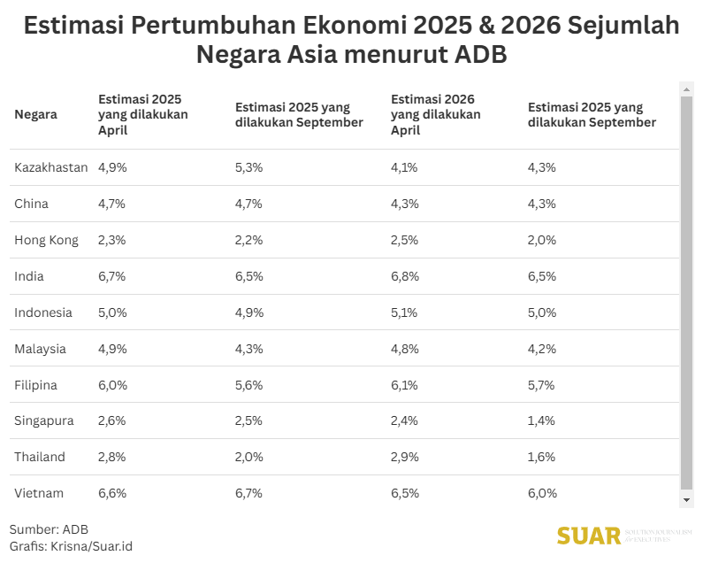 - The latest Asian Development Bank (ADB) research released in September 2025 on the economic outlook states that economic growth in the Asia Pacific region in 2025 will slow to 4.8% – from the previous prediction in April of 4.9%. Indonesia's economic growth in 2025 is also predicted to shrink to 4.9% after previously being predicted at 5.0% in April. Therefore, it is necessary to implement adaptive, appropriate and harmonious fiscal and monetary policies so that economic performance continues to run, as an effort to exceed these projected estimates.