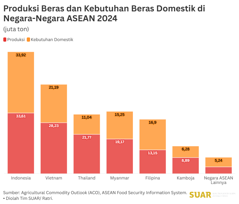 - Compared to other rice-producing countries in ASEAN, Indonesia is not yet fully self-sufficient. However, the trend of rice production is starting to increase, so it will not be long before food self-sufficiency (rice) can be achieved. The December 2024 Agricultural Commodity Outlook (ACO) reported that of all ASEAN members, Indonesia's self-sufficiency ratio (SSR) reached 99.11%. The SSR is expected to increase in 2025 to reach 99.8%. Not only does this bring optimism, it is also a challenge to continue improving the performance of national rice production.