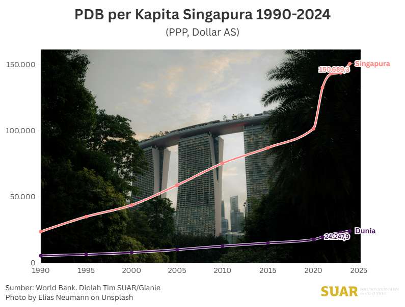 - Based on World Bank data, Singapore's per capita income during the period 1990-2024 increased sixfold. In 1990, Singapore's GDP per capita as measured by purchasing power parity (PPP) was 23,815.2 US dollars. In 2024, the figure will already be 150,689.3 US dollars.