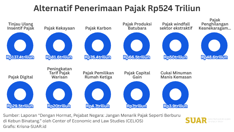- In the report "Respectfully, State Officials: Don't Collect Taxes Like Hunting in a Zoo." released by the Center of Economic and Law Studies (Celios) reveals that by applying the right tax instruments, the government can increase revenue to IDR 524 trillion per year. This is without the need to burden the business world and society.