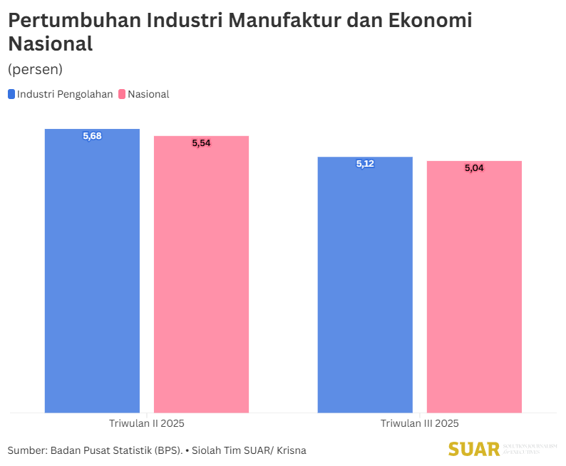 - Growth in the manufacturing sector in 2026 is projected to remain stable despite the shadow of the global economic slowdown and wage issues. The business world continues to expand due to rising domestic demand, and straightforward policies are needed to attract investment into Indonesia. According to data from the Central Statistics Agency (BPS), in the third quarter of 2025, the manufacturing industry grew by 5.54%year on year (YoY). This figure is lower than the growth of the manufacturing industry in the second quarter of 2025, which was 5.68%. In the second quarter of 2025 and the third quarter of 2025, industrial growth was higher than national economic growth.