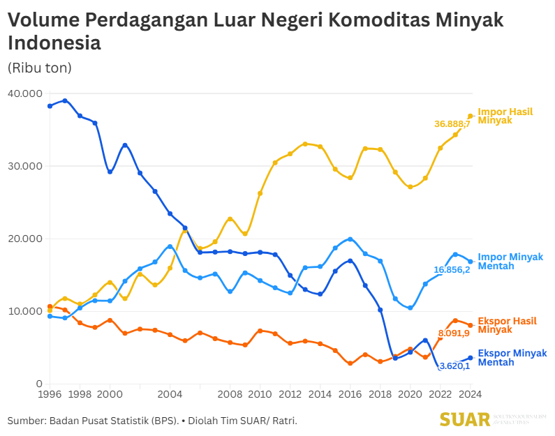 - Unfortunately, this increasing consumption trend is inversely proportional to the condition of domestic oil production. Data shows a worrying decline in production. Oil production continues to decline from 287.902 million barrels in 2014 to only 212.332 million barrels in 2024.