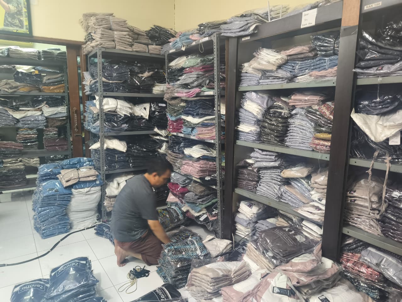 Piles of clothes packed in transparent plastic filled the sides of the room. An employee was busy organizing, sorting, and counting them.