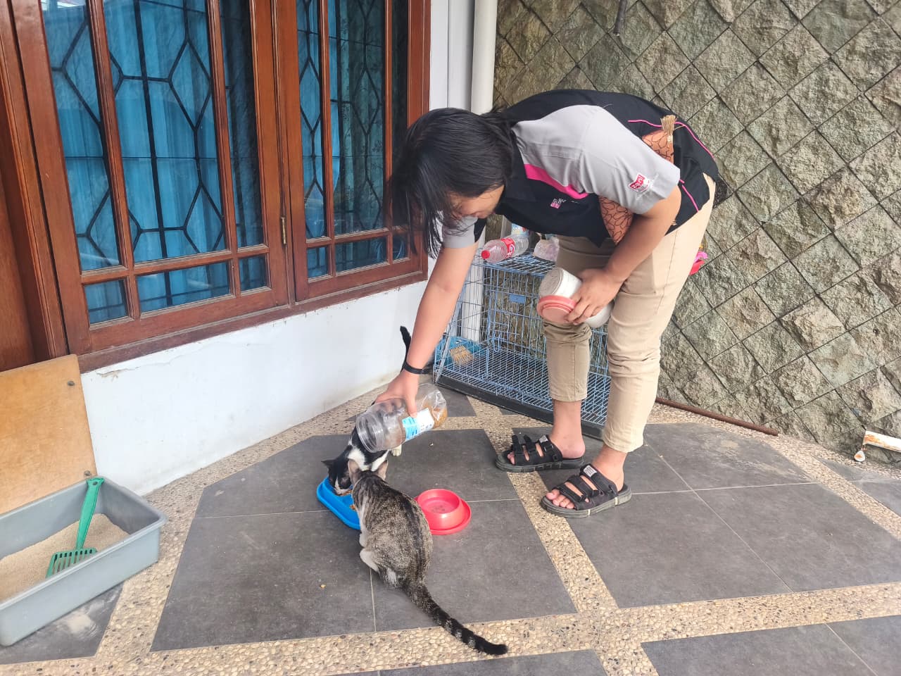 Fikri now has three cats that he has been taking care of for five years. The cats are of various types, and he takes care of everything himself, from feeding to cleaning the cages every day.