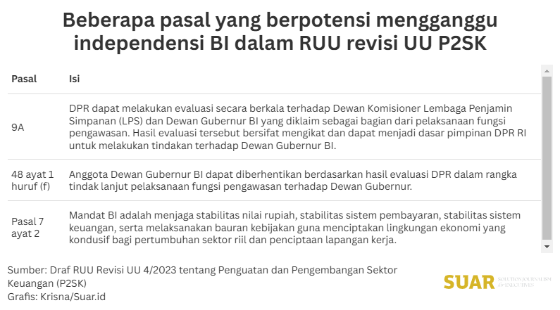 Executive Director of the Center of Economic and Law Studies (Celios) Bhima Yudhistira, on various occasions attended by Suar.id, emphasized that the revision of the P2SK Law was not at all urgent. On the contrary, the changes tend to weaken BI's independence.