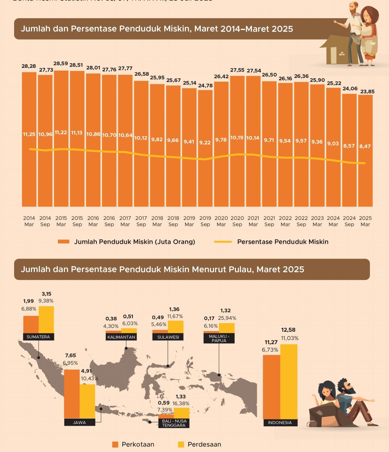 Deputy for Social Statistics at BPS, Ateng Hartono, in a press conference on Friday (25/7/2025), announced that the number of poor people fell slightly, by only around 200,000 people, to 23.85 million people, or 8.47% of the total population.