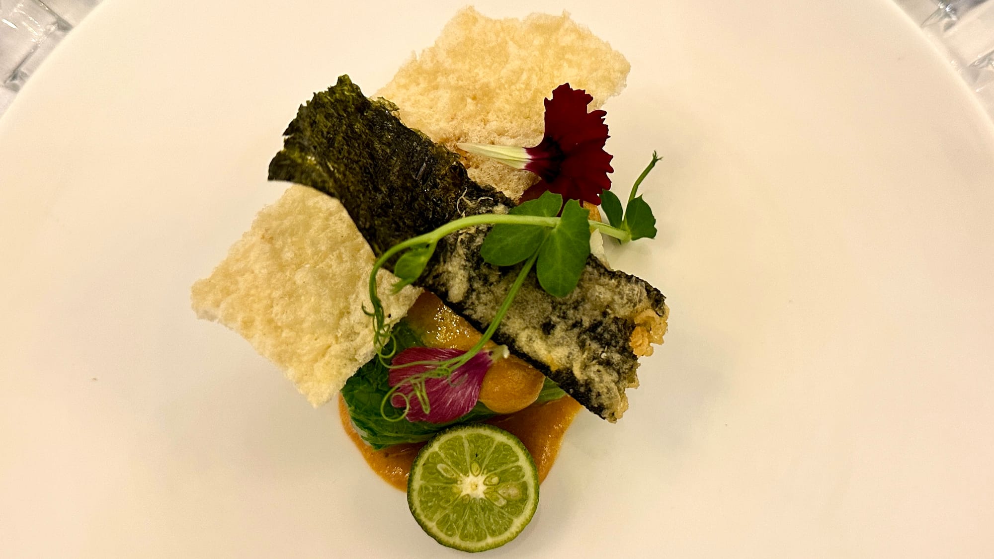 "We combine Japanese lemper and Indonesian lemper into one. This is Tapakolo wrapped in seaweed. That's the fusion and marriage between Indonesia and Japan. Please enjoy your main course," said Anandita with a smile.