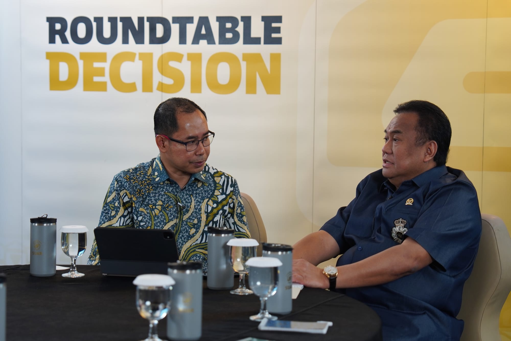 Menteri Koordinator bidang Pemberdayaan Masyarakat Muhaimin Iskandarsaat beramah tamah dengan peserta Roundtable Decision (SUAR/Ahmad Affandi)