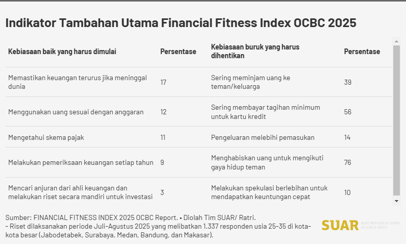 - The OCBC 2025 Financial Fitness Index research indicates a decline in financial health among young people. The research, which targets young people aged 25-35 years, shows that the financial health of young Indonesians is still far from perfect. Many bad habits are considered to interfere with good financial management.