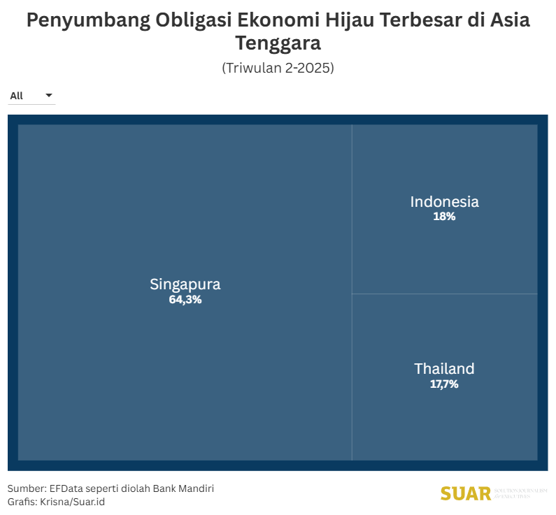 - Indonesia ranks second among Southeast Asian countries as the largest issuer of green and sustainable economy bonds. In the second quarter of 2025, Indonesia issued 18% of the total green, social, sustainability, and sustainability-linked (GSSS) bonds in Southeast Asia. Meanwhile, Singapore ranked first with a share of 64.3%. However, bonds from Indonesia offer the highest coupon with 8.1%. The tenor period is quite short, namely 3%.