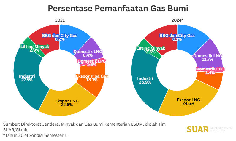 - The utilization of natural gas for industrial needs accounts for approximately 27 percent. Its utilization has tended to increase, reaching its highest proportion in 2023 (30.83%). This increase is inseparable from efforts to support the structural transformation process, which is shifting from a focus on activities in the agricultural sector to the processing industry sector.