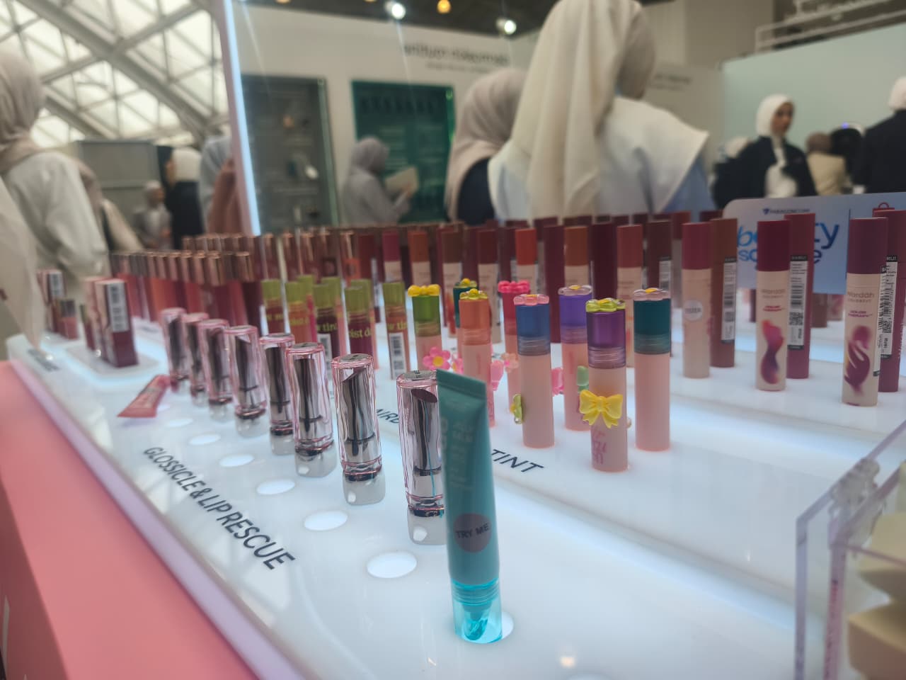 Berbagai produk lipstik dipamerkan dalam Beauty Tech 2026 di Jakarta, 21 Januari 2026. (Foto: Uswatun Hasanah / SUAR)