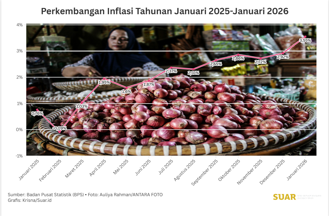 Inflasi Tahunan Januari 2026 Tembus 3,55% Akibat Low Base Effect