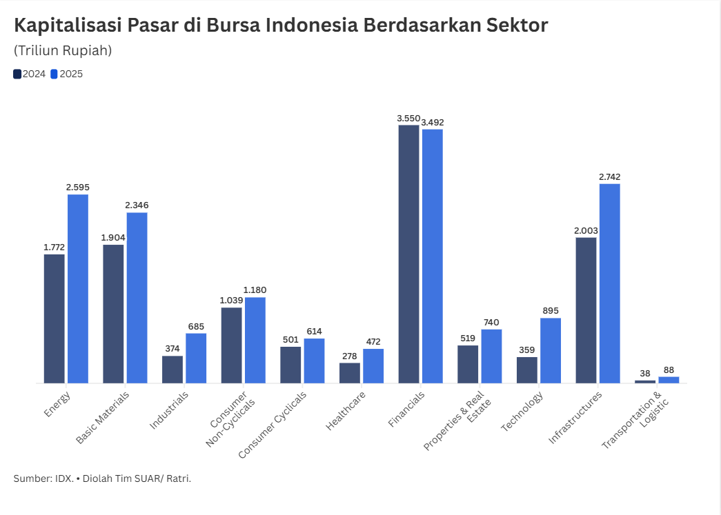 - Langkah Danantara yang akan berinvestasi besar-besaran di pasar modal domestik mulai 2 Februari 2026 menandai babak baru investasi pemerintah di tengah gonjang-ganjing bursa efek pasca kebijakan MSCI. Dalam strategi pemilihan saham, Danantara akan mengarahkan pilihannya pada saham-saham sektor yang memiliki kapitalisasi pasar. Di sektor finansial, misalnya ada saham BBCA (Rp 985,49 triliun) dan BBRI (Rp 549,16 triliun) yang menjadi kandidat terkuat karena stabilitas dan perannya sebagai penggerak pasar keuangan. Sementara itu, di sektor infrastruktur, saham BREN dengan kapitalisasi pasar sebesar Rp 1.297,73 triliun juga menawarkan eksposur besar pada energi terbarukan, yang selaras dengan misi jangka panjang pengelolaan dana abadi negara.