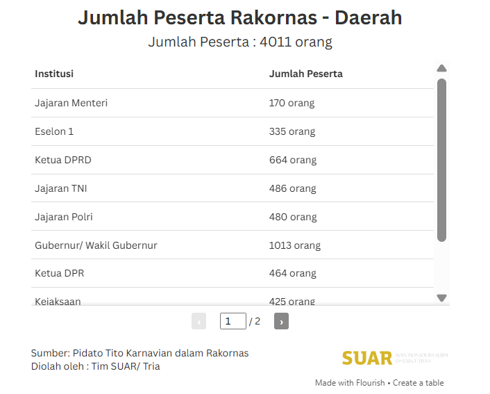- Presiden Prabowo Subianto pada Senin (2/2) menegaskan komitmen pemerintah untuk memperkuat sinergi pusat dan daerah demi menjaga kesinambungan pembangunan nasional, terutama dalam memperkuat program prioritas pemerintah. Prabowo menekankan pentingnya pemahaman peran dan tugas aparatur pemerintahan, baik di tingkat pusat maupun daerah, sebagai pemimpin rakyat. Harapan rakyat tertuju pada hadirnya pemimpin yang adil, jujur, dan bekerja untuk kepentingan masyarakat luas, bukan untuk kepentingan pribadi atau kelompok tertentu. "Rakyat mendambakan selalu pemimpin yang baik, pemimpin yang adil, pemimpin yang jujur, pemimpin yang bekerja untuk kepentingan rakyat, semuanya bukan segelintir orang. Bahkan mereka tidak suka pemimpin yang hanya memajukan kepentingan pribadinya saja. ini adalah harapan semua rakyat,” ujar dia dalam acara tersebut yang disiarkan live Sekretariat Presiden di Jakarta, pada Senin (2/2).