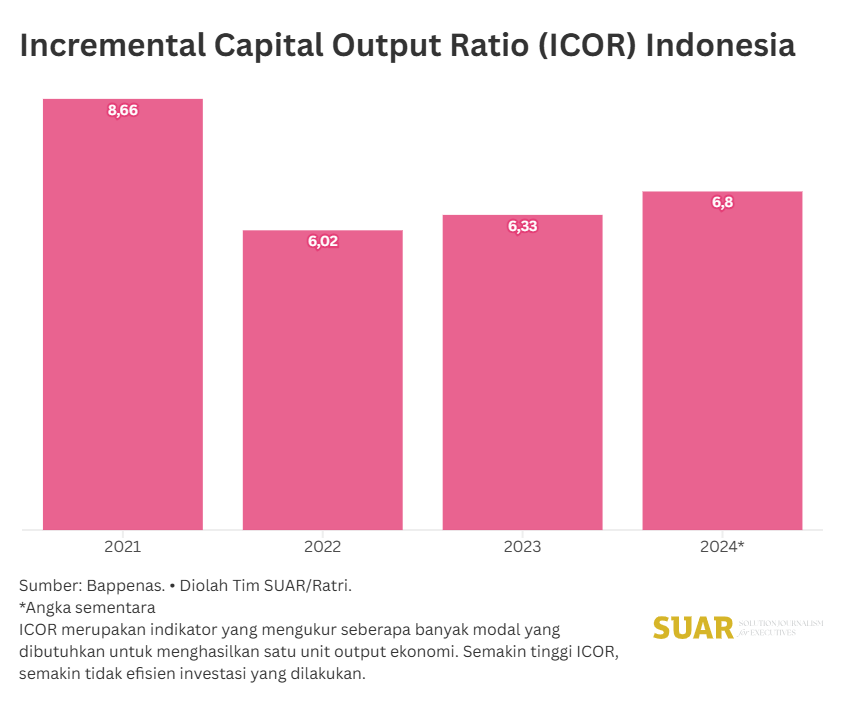 - It takes a lot of capital to realize investment in Indonesia because inefficiency is still high. This high incremental capital output ratio (ICOR) can be an obstacle in accelerating Indonesia's economic growth, which is one of the government's main focuses.