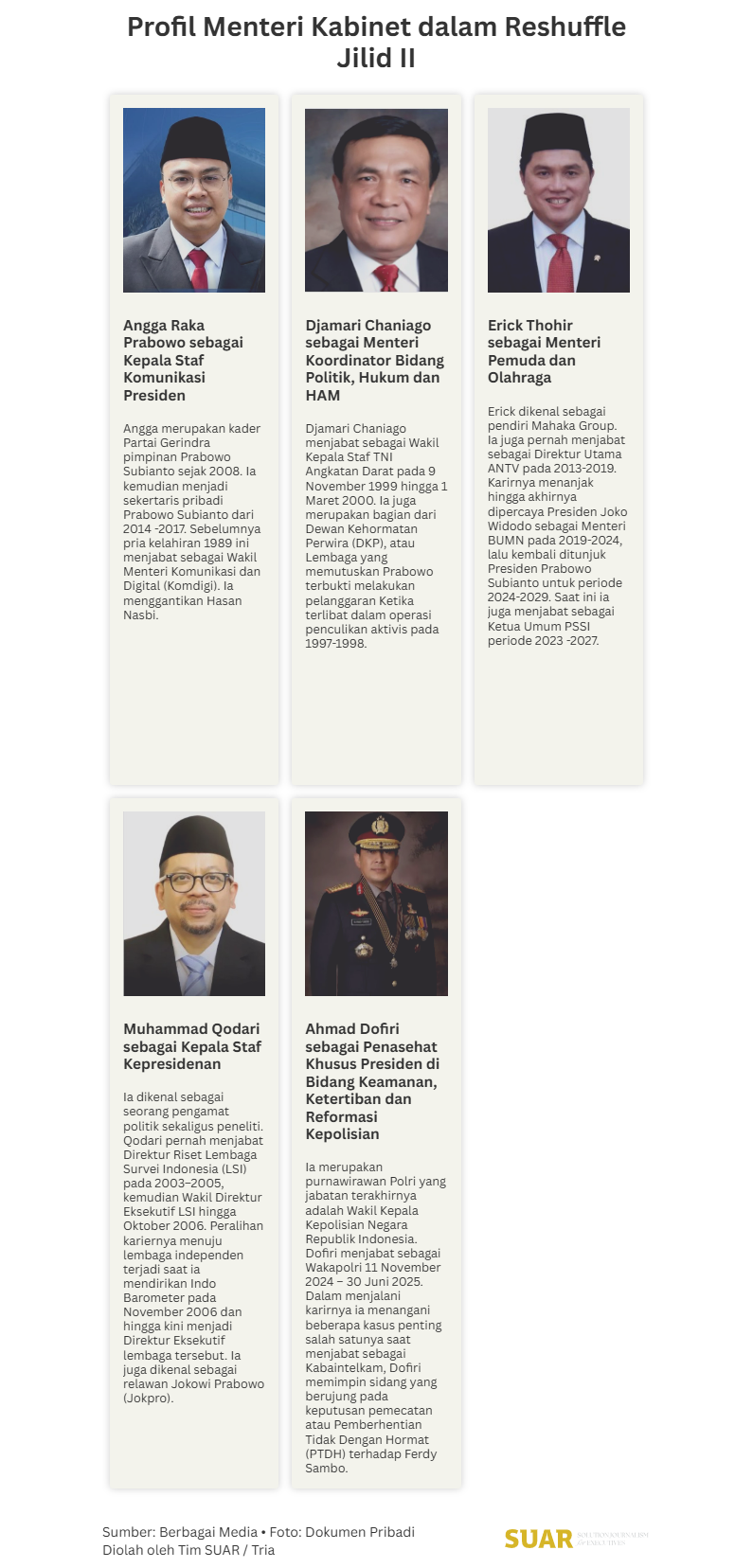 - In addition to Erick, President Prabowo Subianto also changed the composition of the cabinet. The President appointed Djamari Chaniago as Coordinating Minister for Political, Legal and Security Affairs (Menko Polhukam). This position was previously filled by Budi Gunawan - who was removed last week.