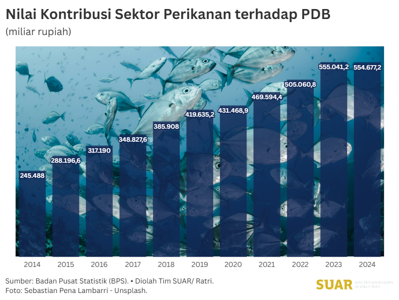 - By 2023, there are more than 3 million workers or fishermen who depend on this sector for their livelihood. They are mostly in areas along the northern coastline or pantura of Java Island, which need greater attention. The production value of capture fisheries has consistently increased from IDR 180 trillion in 2019 to IDR 206 trillion in 2023, although it was corrected in 2020 due to the pandemic. The production value of aquaculture is also growing, although not as high as in the capture fisheries sector, from IDR 263 trillion in 2019 to IDR 272 trillion in 2023.