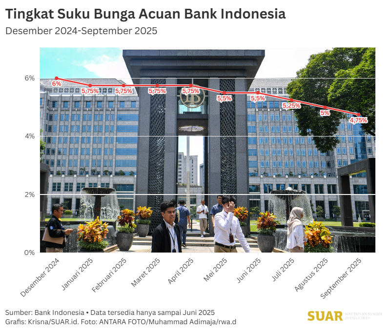- Complementing Finance Minister Purbaya Yudhi Sadewa's fiscal policy, the Board of Governors of Bank Indonesia (BI) announced a 25 basis points (bps) cut in the benchmark interest rate (BI Rate) to 4.75%. This move is a way for BI to increase economic growth through increased public spending, while encouraging banks with liquidity expansion to channel more credit.
