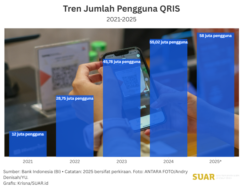 - Since it was first launched on August 17, 2019, QRIS has connected 57 million users and 39 million merchants, most of whom are UMKM. BI targets that by 2030, digital finance will increase to 147.3 billion transactions.