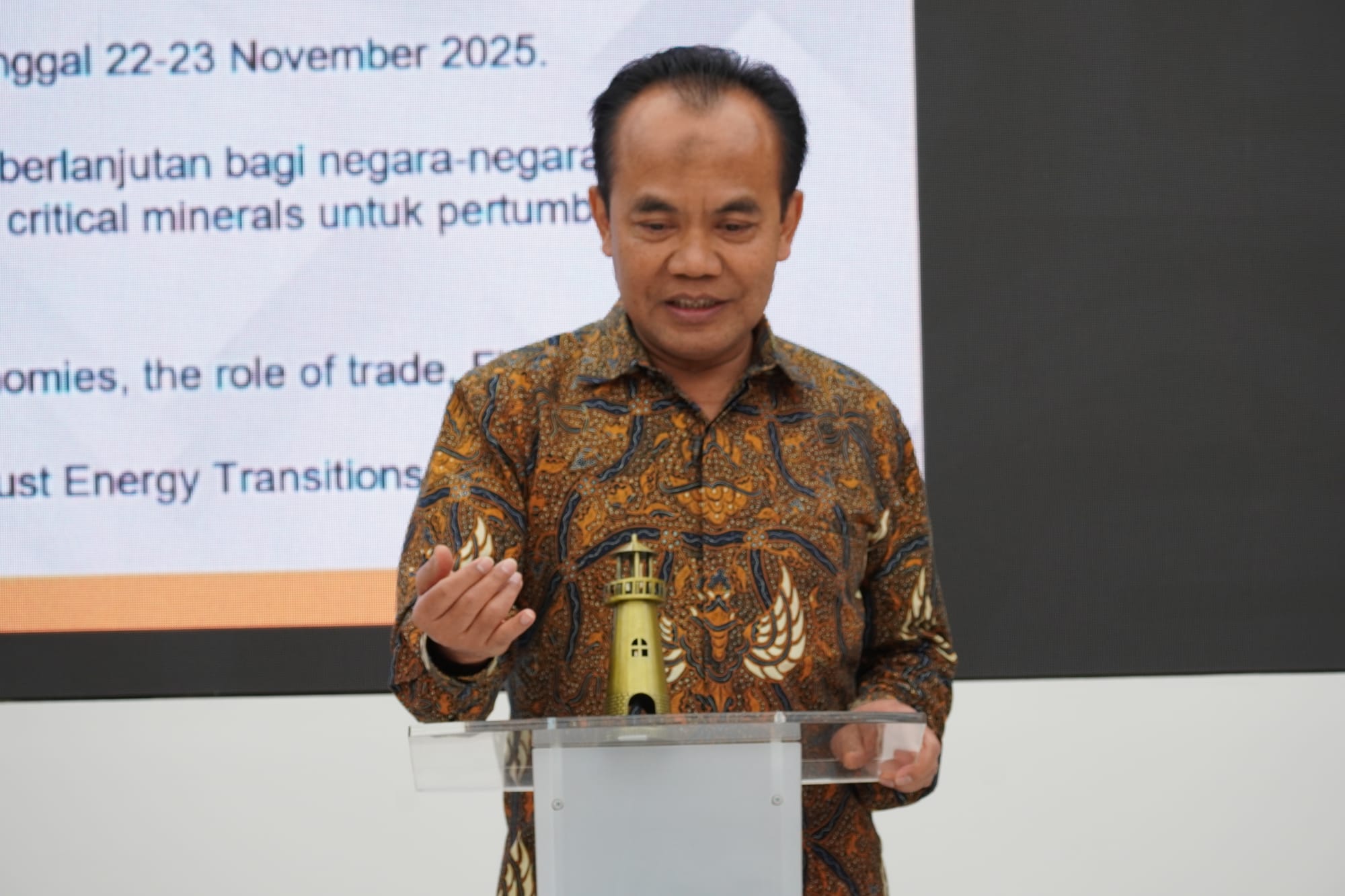 Berdiri depan podium di samping para narasumber yang duduk melingkar di meja bundar, Sekretaris Kementerian Koordinator Perekonomian Susiwijono Moegiarso memulai diskusi dengan menceritakan tentang pertemuan pimpinan-pimpinan negara dunia jelang tutup tahun.