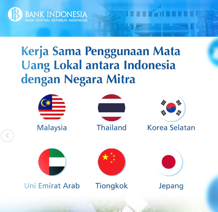 Selain China, beberapa negara mitra kerjasama penggunaan mata uang lokal antara lain Malaysia, Thailand, Korea Selatan, Uni Emirat Arab dan Jepang.