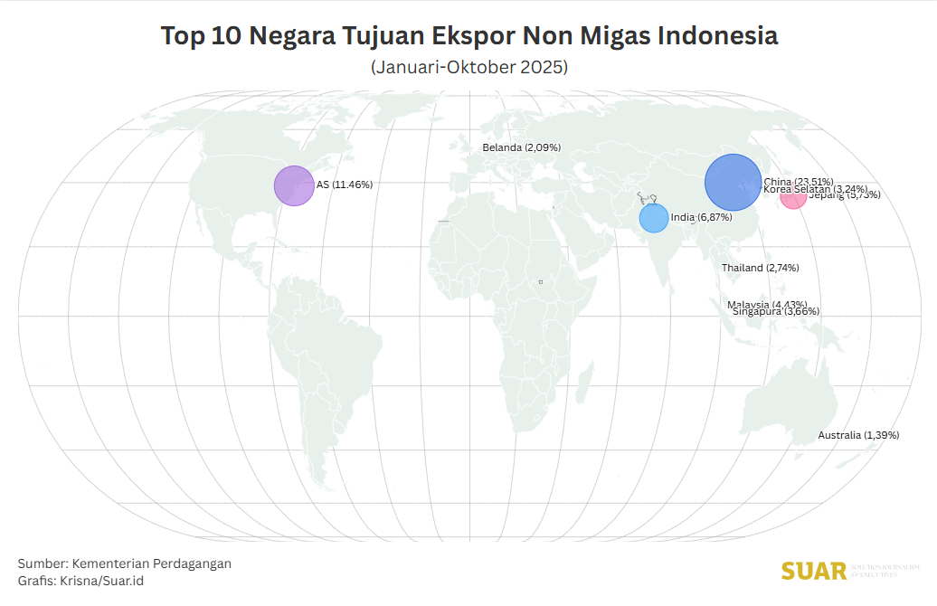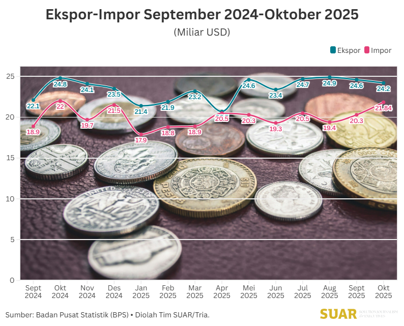 - Sepanjang 2025, perdagangan internasional Indonesia mengalami beragam peluang dan tantangan. Berbagai upaya perjanjian kerjasama perdagangan bilateral dengan negara mitra dagang maupun perjanjian multilateral dengan kumpulan negara terus dilakukan. Salah satu sorotan utama tak lain dari keputusan presiden Amerika Serikat (AS) Donald Trump yang memutuskan memberikan tarif perdagangan pada puluhan negara dunia termasuk Indonesia. Banyak hal yang terjadi sepanjang tahun ini yang akan mengubah lanskap semesta perdagangan internasional tanah air. Membuka kembali rekam peristiwa selama satu tahun, SUAR mencatat beberapa peristiwa signifikan yang menjadi highlight sektor perdagangan tahun ini.