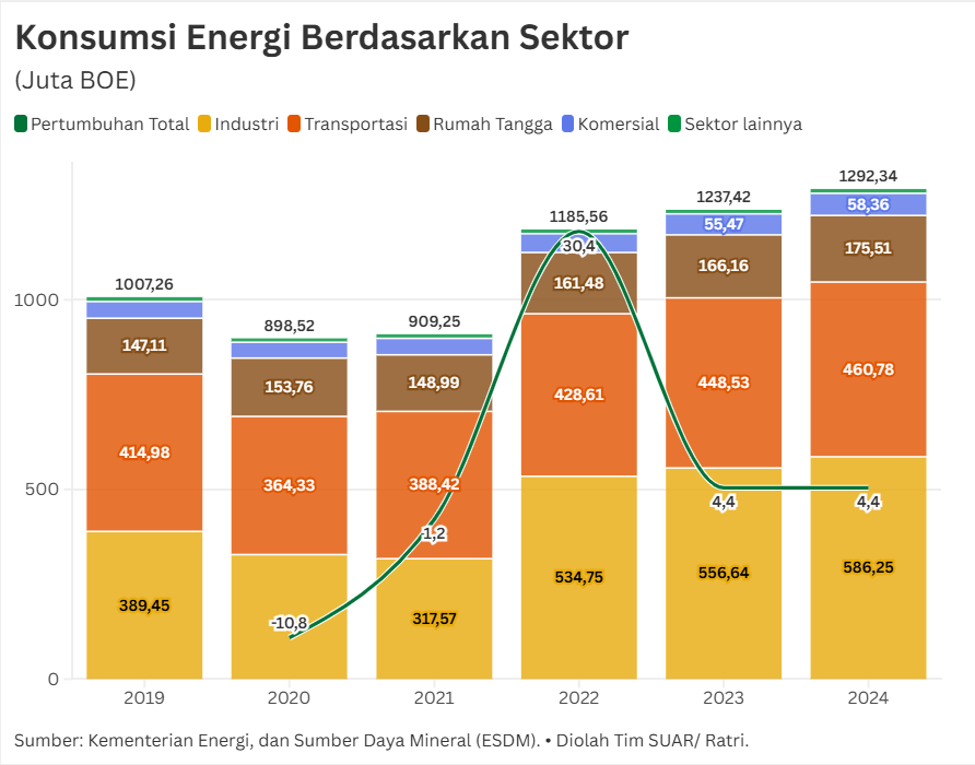 - Ketahanan energi Indonesia menghadapi tekanan dari dinamika geopolitik global, terutama karena rantai pasok komoditas energi sangat bergantung pada jalur perdagangan strategis. Berdasarkan data per 9 Maret, stok beberapa jenis bahan bakar masih relatif stabil. Cadangan Pertalite tercatat sekitar 25 hari, Pertamax 26,56 hari, Pertamax Turbo 23,26 hari, solar 16,28 hari, Pertamina Dex 44,43 hari, avtur 38,42 hari, serta LPG sekitar 11,51 hari. Saat ini kapasitas penyimpanan BBM nasional milik Pertamina sekitar 6,10 juta kiloliter atau 67% dari total kapasitas nasional. Sementara fasilitas penyimpanan non-Pertamina mencapai sekitar 3,06 juta kiloliter atau 33%.