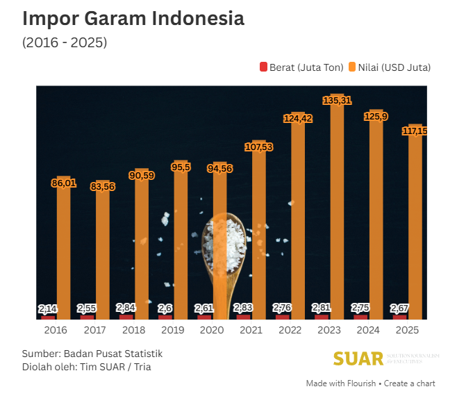 - Pemerintah melalui Menteri Koordinator Bidang Pangan Zulkifli Hasan menargetkan swasembada garam nasional pada 2027 guna memutus ketergantungan impor dan menjaga stabilitas pasokan industri. Langkah strategis yang diambil meliputi transformasi PT Garam (Persero), ekstensifikasi lahan di Pulau Rote, hingga penerapan teknologi pemurnian modern seperti Mechanical Vapor Recompression (MVR) untuk meningkatkan kualitas garam rakyat menuju standar industri. Upaya yang berlandaskan Perpres Nomor 17 Tahun 2025 ini diharapkan mampu mengejar defisit produksi nasional yang saat ini baru mencapai 1 juta-2 juta ton dari total kebutuhan 4,5 juta-5 juta ton per tahun.
