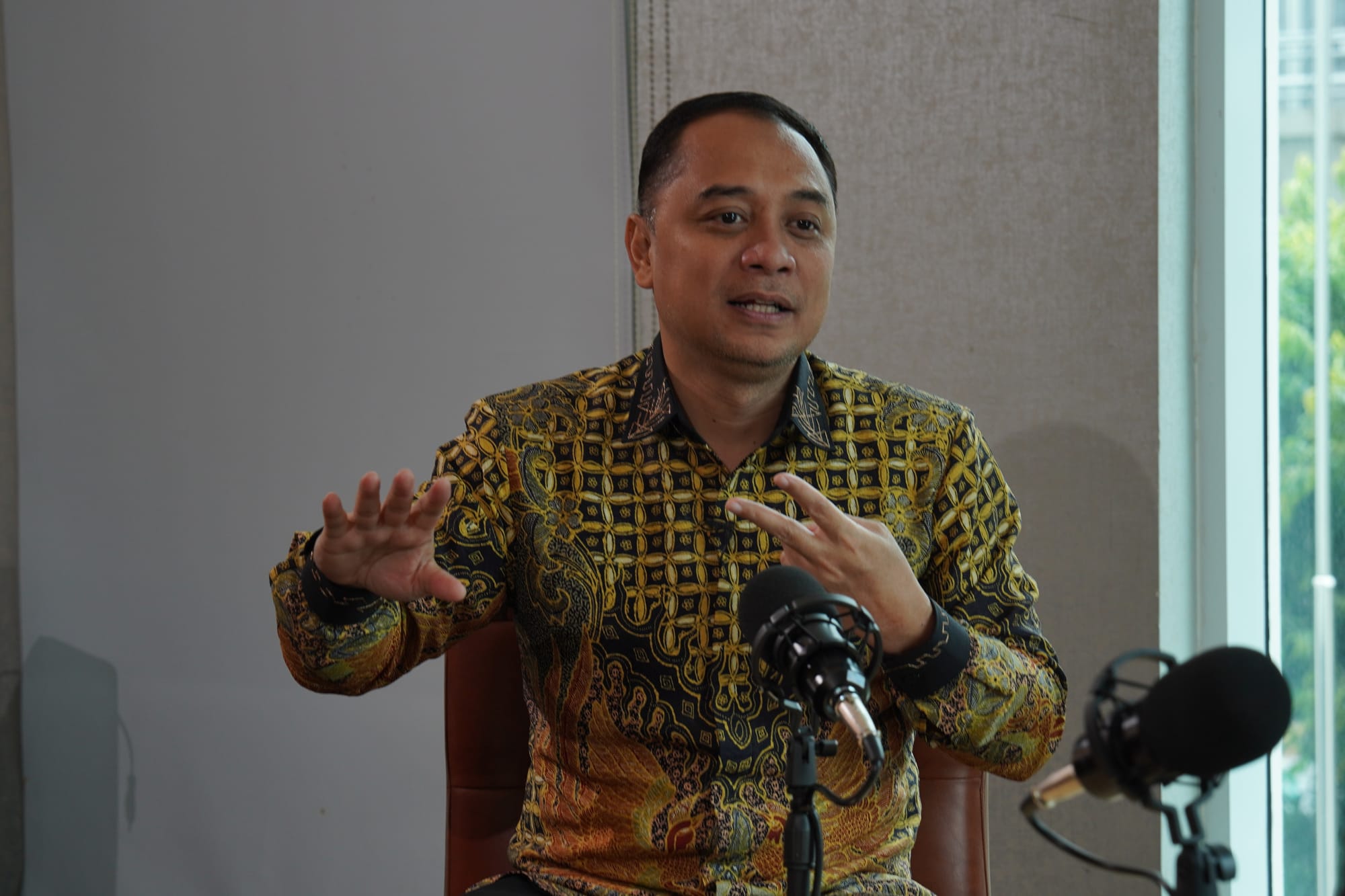 Keramaian di ballroom sebuah hotel pasca gelaran Roundtable Decision SUAR masih menyala. Mayoritas tamu VIP dan VVIP masih saling bercakap-cakap ketika tim SUAR masuk ke dalam pusaran untuk mewawancarai Wali Kota Surabaya, Eri Cahyadi.