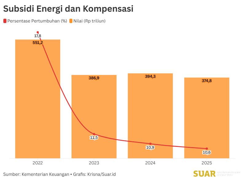 - Hingga September 2025, Kementerian Keuangan telah merealisasikan subsidi sebesar Rp218 triliun atau 43,7% dari pagu APBN 2025 sebesar Rp498,8 triliun. Sayangnya, penyaluran subsidi masih kerap salah sasaran. Terbukti masyarakat di desil 8-10 masih menikmati subsidi dan kompensasi energi. Kelompok desil 8 dan 10, yaitu masyarakat dengan pendapatan per kapita sebesar Rp6.500.000 hingga di atas Rp20.000.000 per bulan, masih menikmati subsidi dan kompensasi energi, dengan tingkat penerimaan manfaat berkisar 9%-11%. Secara rinci, masyarakat desil 8 menerima subsidi dan kompensasi listrik hingga Rp20,7 triliun serta BBM hingga Rp7,8 triliun; masyarakat desil 9 menerima subsidi dan kompensasi listrik hingga Rp18,7 triliun serta BBM hingga Rp7 triliun; dan masyarakat desil 10 menerima subsidi dan kompensasi listrik hingga Rp16,6 triliun serta BBM hingga Rp6,3 triliun.