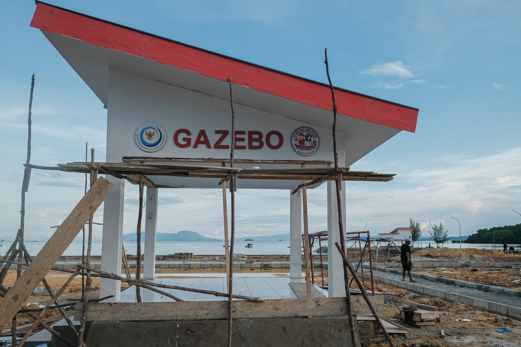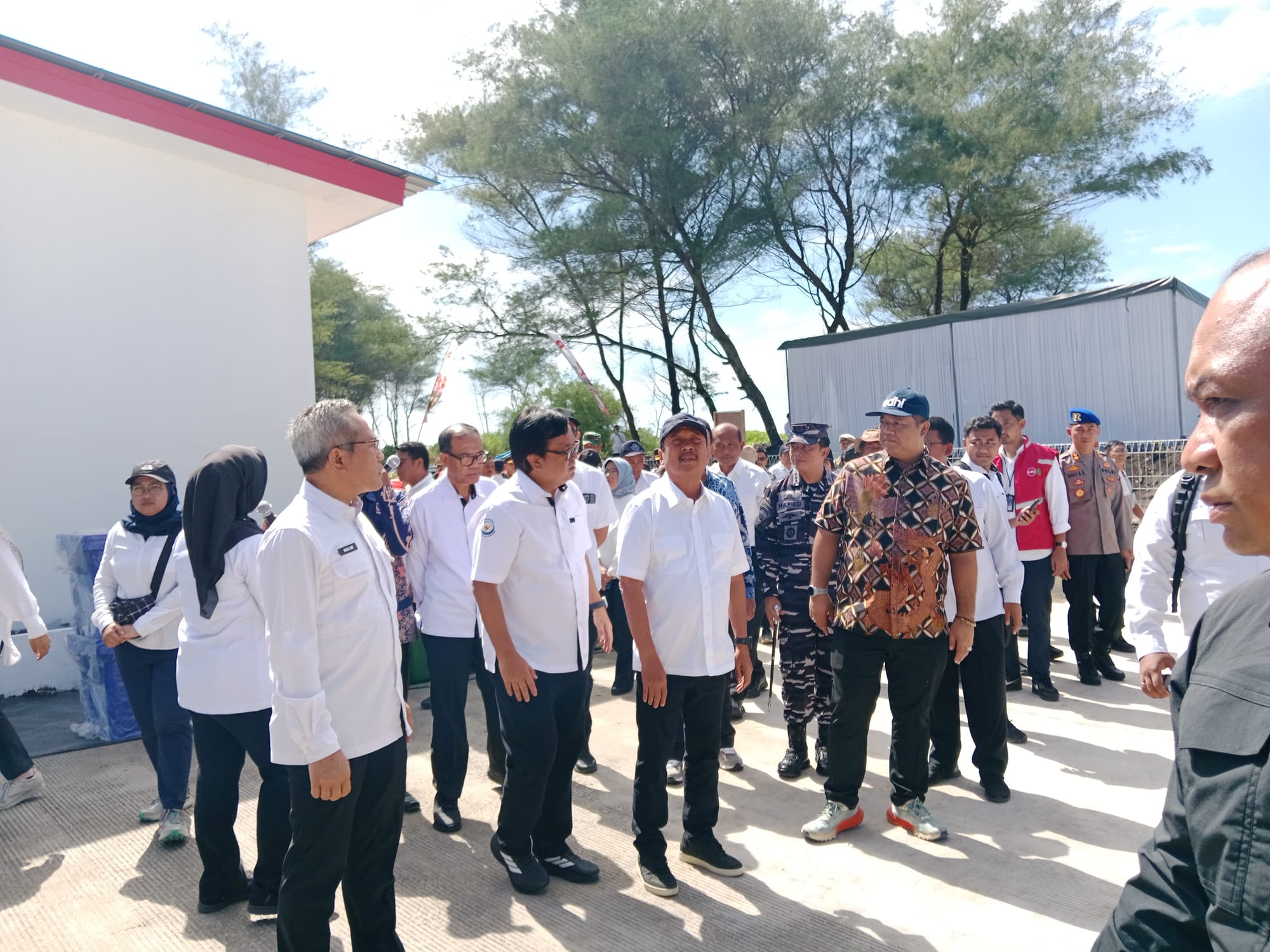 Pada Jumat, 2 Januari 2026 lalu pagi, kesibukan meningkat di lokasi tersebut. Spanduk proyek dan ucapan selamat datang dibentangkan. Tenda besar dan kursi-kursi disiapkan untuk menampung sekitar 130 nelayan setempat yang diundang. Pagi itu, Menteri Kelautan dan Perikanan Sakti Wahyu Trenggono hadir untuk melihat perkembangan proyek.