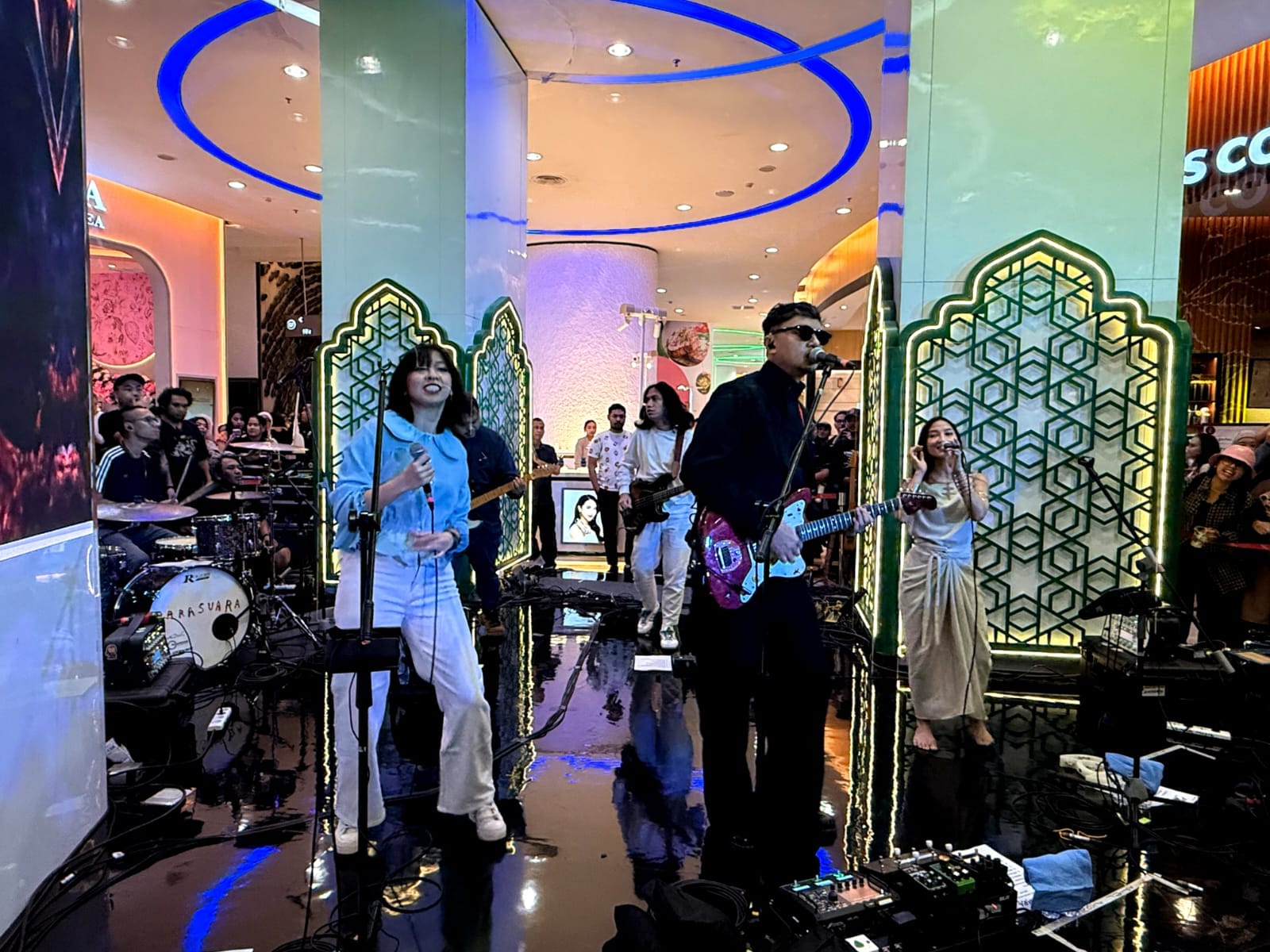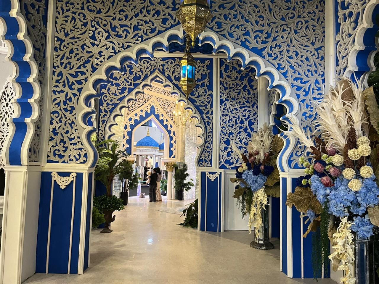 "Dekorasi didominasi nuansa biru yang menenangkan dengan sentuhan motif geometris Islami serta instalasi artistik modern yang menciptakan atmosfer elegan dan penuh kedamaian," katanya pada SUAR, Jumat (13/03/2026).