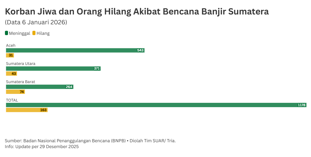 - Pemerintah menargetkan pemulihan penuh layanan kesehatan di tiga wilayah provinsi terdampak bencana Aceh, Sumatera Utara, dan Sumatera Barat dapat tercapai pada akhir Maret 2026. Tercatat hingga saat ini, sembilan rumah sakit yang tadinya berhenti operasional total telah berfungsi kembali meski belum maksimal. Sementara dari 152 puskesmas yang sempat berhenti beroperasi karena terendam banjir parah, tinggal tiga yang belum dapat difungsikan kembali rusak berat. Menurut rencana tiga puskesmas itu akan dibangun ulang.