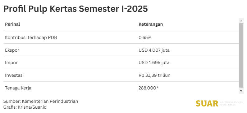 - Produk impor kertas dari China mengalami lonjakan pada tahun ini, padahal produksi dalam negeri dinilai cukup untuk memenuhi kebutuhan domestik. Berdasarkan data Kementerian Perindustrian, impor pulp dan kertas pada semester I-2025 mencapai USD 1,69 miliar. Angka ini naik jika dibandingkan periode yang sama tahun lalu sebesar USD 1,53 miliar. Adapun jenis produk impor yang banyak masuk ke Indonesia adalah kertas ivory dan duplex yang digunakan untuk kemasan.