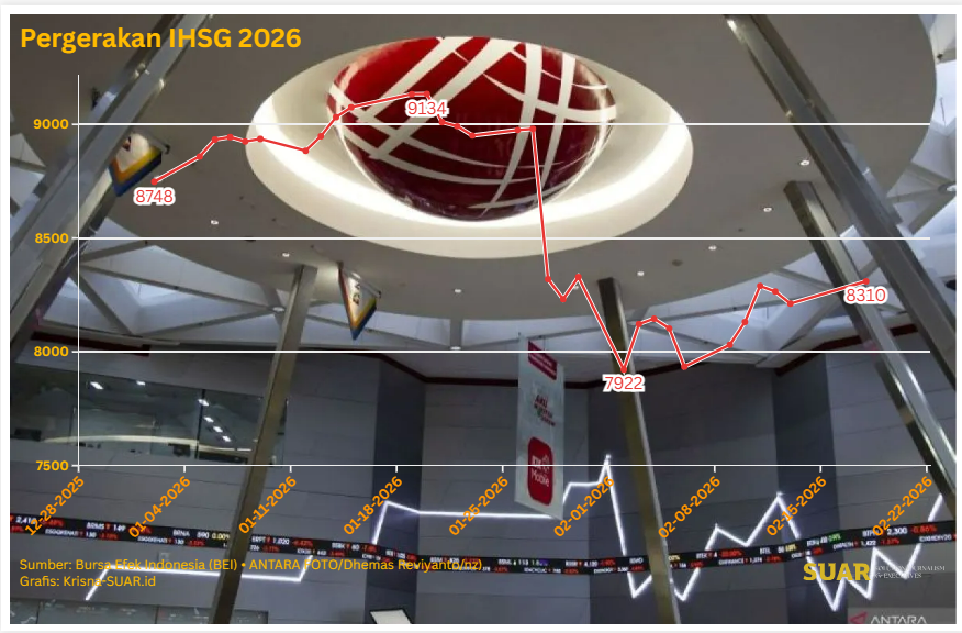 - Indeks Harga Saham Gabungan (IHSG) menunjukkan ketahanan di tengah derasnya arus keluar dana asing dan sorotan lembaga pemeringkat global. Ini tercermin pada perdagangan 9–13 Februari 2026, IHSG naik 3,49%. Teranyar, pada perdagangan Rabu, (18/2/2026), IHSG melonjak 97,95 poin atau 1,19% ke level 8.310,22. Penguatan tersebut terjadi di tengah aksi jual bersih (net sell) investor asing yang signifikan. Sepanjang pekan lalu, di pasar reguler, investor asing membukukan net sell Rp6,11 triliun.