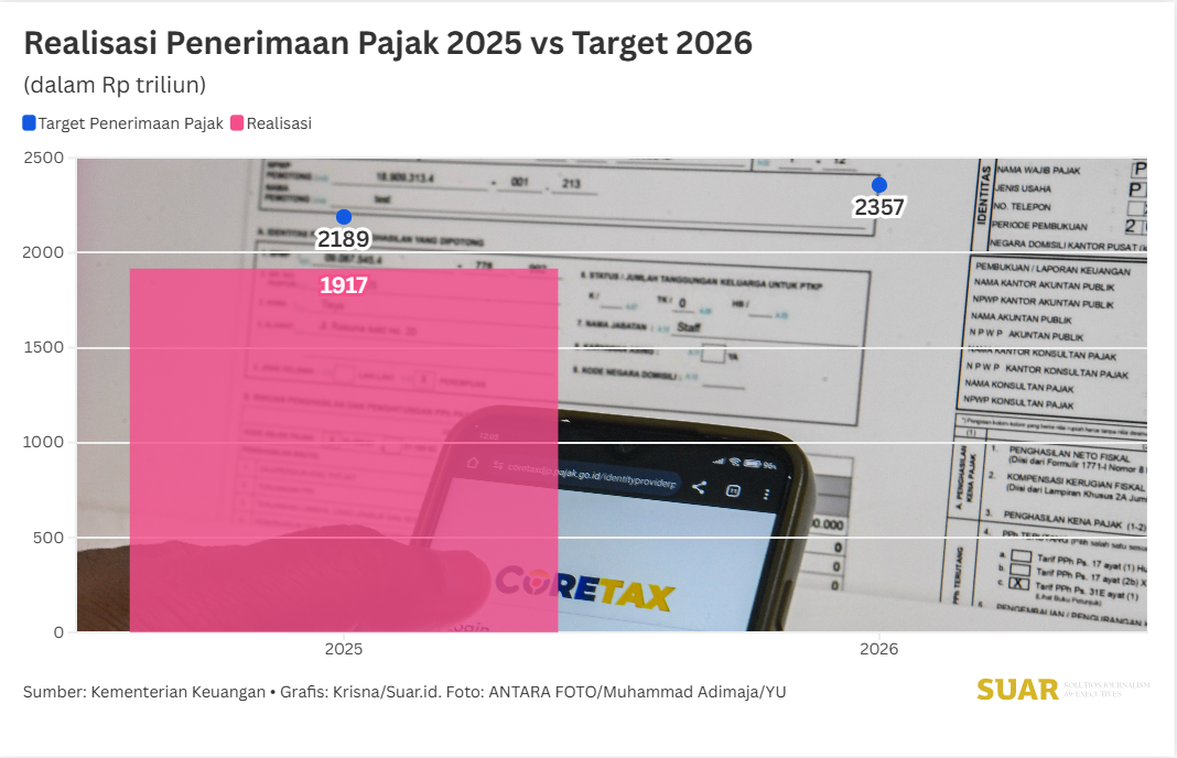 - Target penerimaan pajak 2026 yang sebesar Rp2.357,7 triliun atau naik 22,95% dari realisasi penerimaan pajak 2025 menuntut strategi optimasi penerimaan yang lebih andal. Perluasan basis pajak melalui pemadanan NIK dan NPWP dan penurunan threshold PTKP UMKM, diikuti penyederhanaan struktur penerimaan cukai, menjadi solusi rekomendasi ekonom dan dunia usaha demi mencegah terulangnya shortfall yang memperlebar defisit APBN.