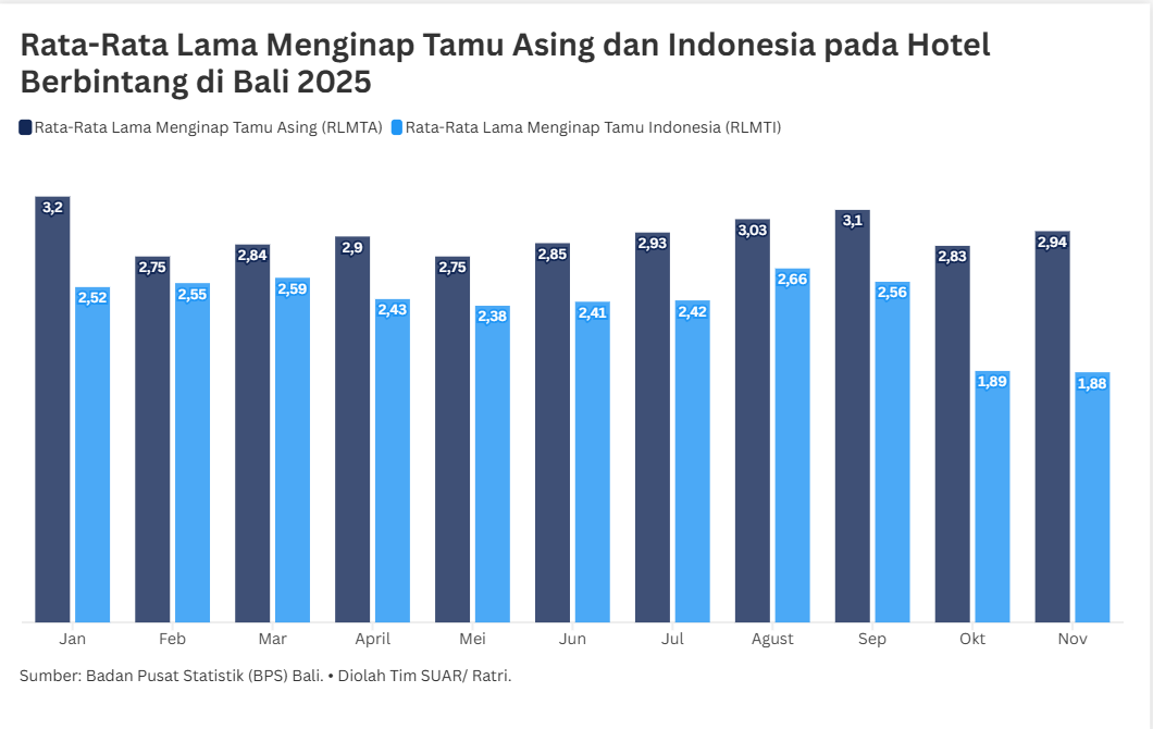 - Bali dinobatkan sebagai destinasi wisata terbaik dunia peringkat pertama, mengungguli kota-kota ikonik global seperti London dan Paris. Popularitas Bali yang konsisten sebagai destinasi wisata terbaik ini tidak lepas dari kemampuannya memadukan keindahan alam yang eksotis dengan kedalaman budaya spiritualitas yang unik. Berdasarkan data Badan Pusat Statistik (BPS), terlihat tren pemulihan kunjungan wisatawan yang sangat signifikan pascapandemi. Setelah sempat mengalami titik terendah pada tahun 2021 akibat pembatasan mobilitas, jumlah wisatawan domestik menunjukkan lonjakan tajam hingga mencapai angka di atas 10 juta kunjungan pada akhir 2024. Sementara itu, kunjungan wisatawan mancanegara juga merangkak naik dan mencapai puncaknya di angka 6,37 juta hingga periode November 2025. Pertumbuhan yang berkelanjutan ini mencerminkan tingginya kepercayaan dunia terhadap stabilitas dan daya tarik pariwisata Bali di mata global.