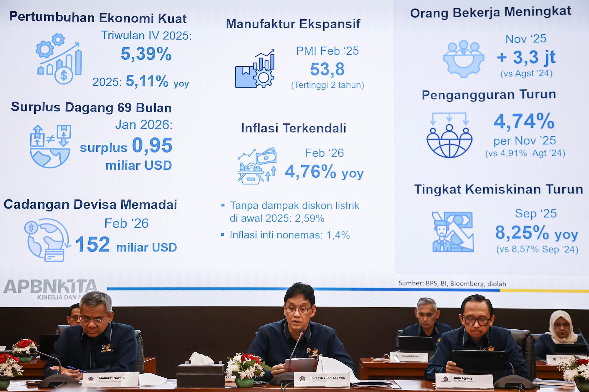 Dalam laporannya, Purbaya juga menjelaskan bahwa kondisi ekonomi Indonesia hingga Februari menunjukkan kinerja yang sangat kuat. Hal ini tercermin dari Purchasing Managers’ Index (PMI) yang pada Februari mencapai 53,8, level tertinggi dalam beberapa tahun terakhir.