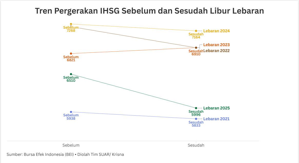 Kembali beroperasinya perdagangan pasar modal dan Bank Indonesia. Pada Rabu 25 Maret 2026, perdagangan di Bursa Efek Indonesia kembali dibuka setelah berakhirnya periode libur Lebaran sejak Rabu 18 Maret 2026. Begitu pula dengan Bank Indonesia yang akan juga kembali beroperasi.