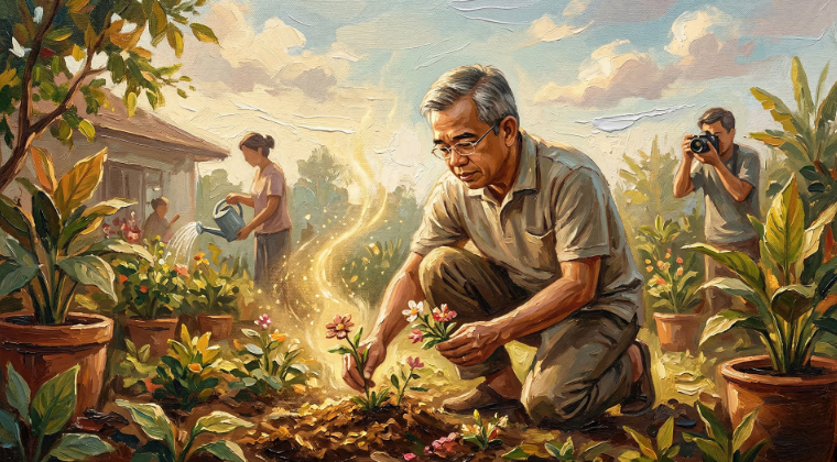 Pernah ada musim ketika aku lebih banyak bermukim dalam rumah: musim perenungan yang memaksa langkah diperlambat agar batin bisa didengar kembali. Dalam keheningan itu, kata-kata menemukan celahnya; sebuah buku terlahir sebagai saksi bahwa jiwa tetap bisa menembus batas ruang dan waktu. Tetapi bukan hanya buku yang tumbuh. Di halaman rumahku, semak-semak yang lama terabaikan seakan berbisik meminta disentuh, seolah mengajakku kembali menyapa tanah yang menumbuhkan kehidupan.